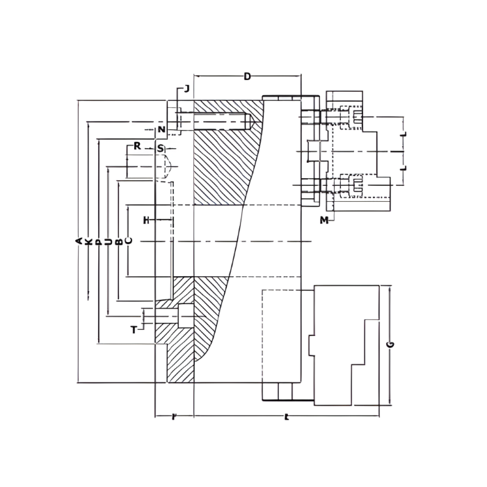 Engineered for consistent quality and a longer operational life, the GY 3200 Self-Centering Lathe Chuck features a robust Single Guide Master Top Jaw design. Built to handle demanding machining tasks, these chucks offer exceptional versatility and precision.