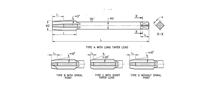| Tap Variety | STRAIGHT FLUTE (Form A,C and D) | SPIRAL POINT (Form B) | SPIRAL FLUTE 35°(Form C) |