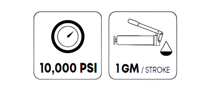 - Variable Stroke Mechanism: Engineered for tight spaces; allows for effective greasing even when handle movement is restricted.